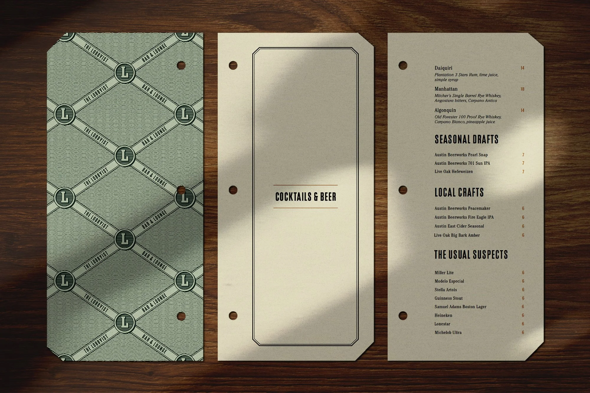 Channeling the spirit of Old Fashioned cocktails and the vast array of whiskeys that The Lobbyist carries, we created a bar menu to showcase their wide collection of spirits.